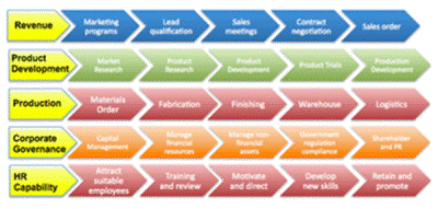 - how products/services are manufactured/created and distributed to customers;