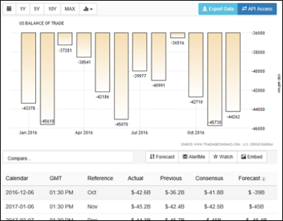 Remember why you’re creating a graph in the first place: to enable your audience to grasp an important point quickly and effectively. With that in mind, consider the following graphs, which I found when googling “U.S. trade balance for 2016”: