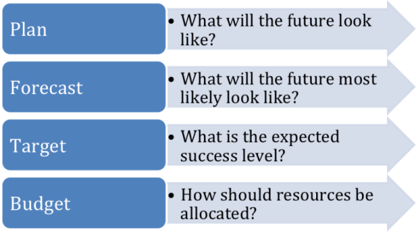 Forecasting is an important process in the FP&A cycle, which assists with looking into the future and managing organisational performance. However, confusion can result from the mixing up of definitions for key FP&A processes. Each process answers a key question, as outlined below in Figure 1: