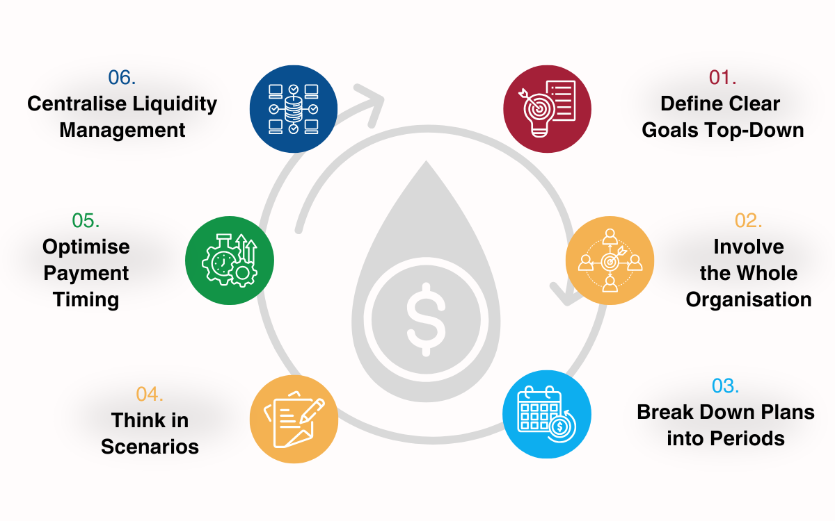 Concentrate liquidity management in one place in the organisation. All departments are stakeholders, and there can be phases in the life of a company where some departments are more affected than others and must be considered priorities.