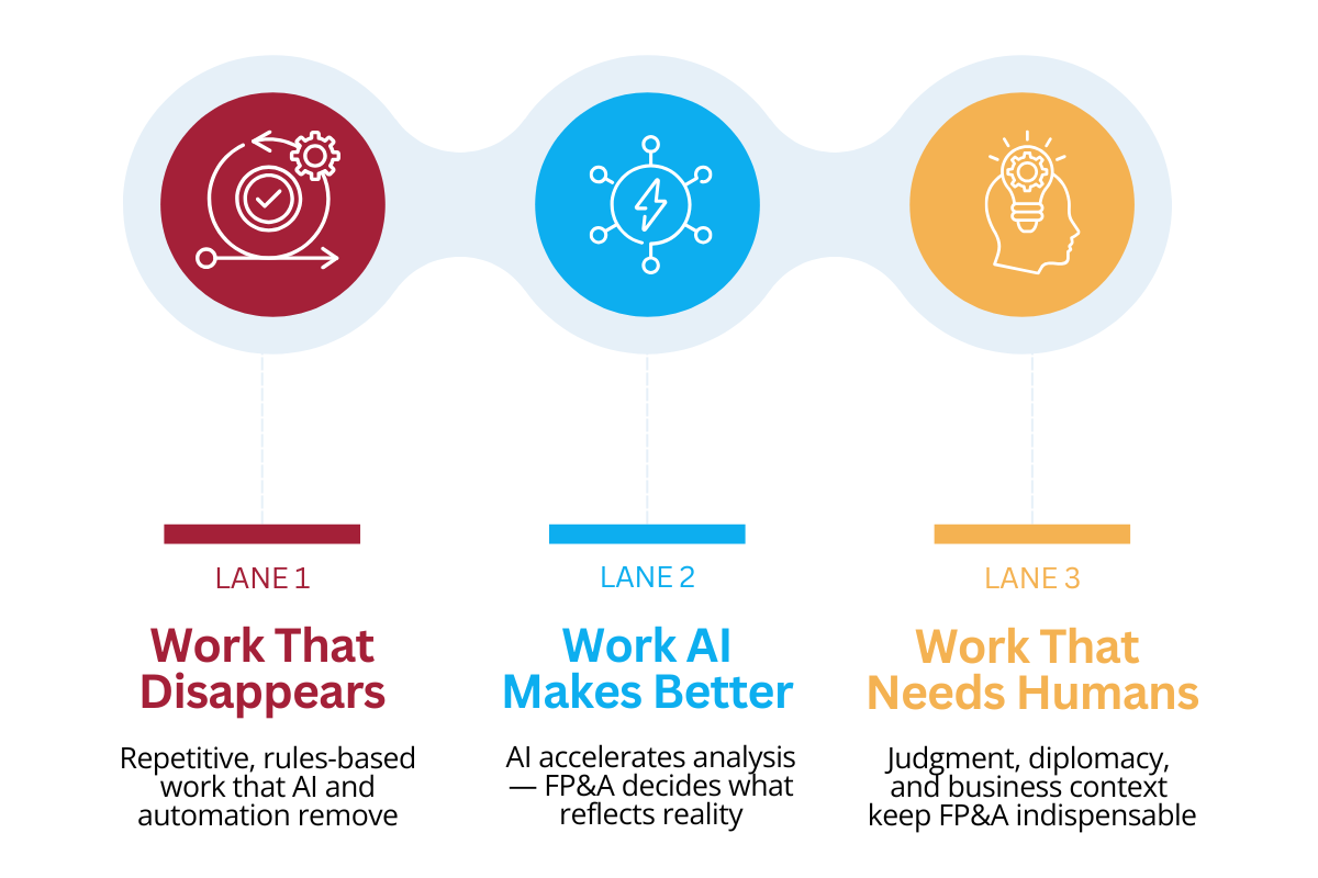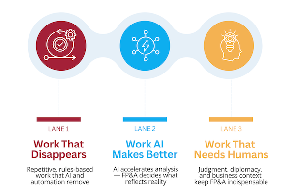 Figure 1. The Three Lanes of FP&A Work in the Age of AI