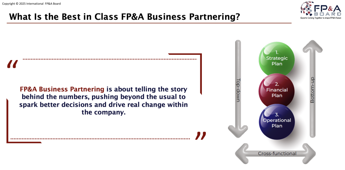 Best-in-class partnering is rooted in the ability to tell the story behind the numbers. It shifts FP&A from reporting what happened to shaping what could happen next. High-performing FP&A partners provide proactive insight, communicate clearly, understand the business intimately, and influence decisions with confidence. At the heart of effective partnering is the ability to “tell the story behind the numbers.”